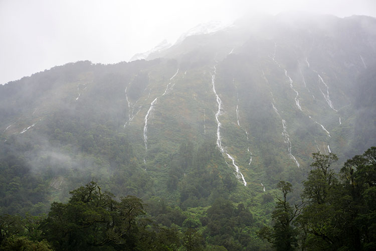 Another thing keeping our spirits up were the awesome views on offer. It rains a lot in Fiordland National Park, and most people think that’s a bad thing, but when it rains dozens of waterfalls pour down the mountains surrounding the pristine valleys. It’s quite a sight, and it made us thankful we got rain on the last day!