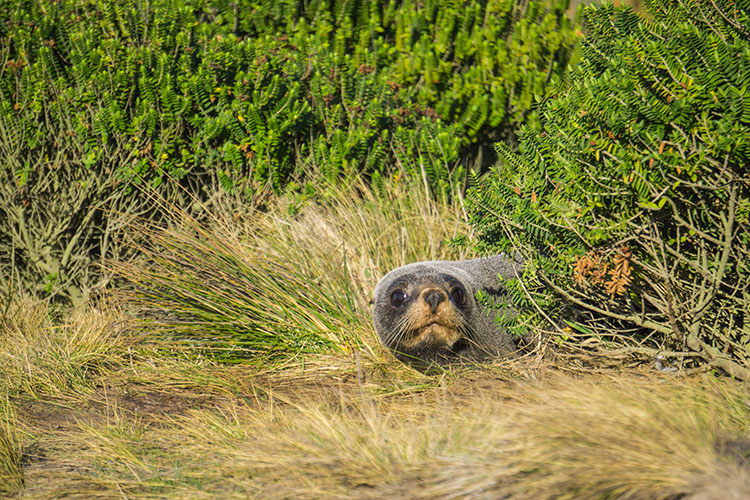 While we were watching the seals play below, we noticed one lying on the cliffs around 20 metres away from us. It just kind of sat there and watched us, and before long we saw another smaller seal poke it’s head out from the bushes. It then went and joined the bigger one and they basically posed for us for a couple of minutes. They’re such cute creatures!